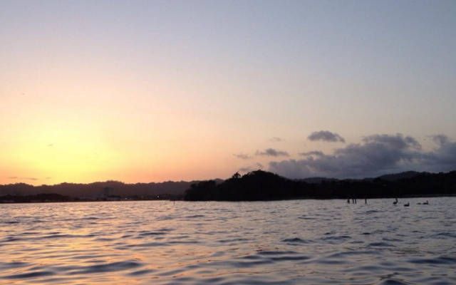 - Una playa con pocas olas.